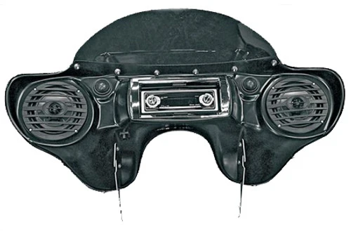 Sleeker and more compact version of Hoppe Industries’ original Quadzilla stereo fairing; 5″ narrower and 4″ shorter without losing sound quality