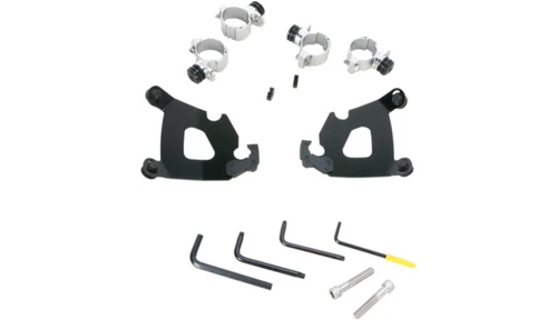 Custom-fit, model-specific mounting kits feature Memphis Shades exclusive Trigger-Lock mounting system, on and off without tools, or swap out with Memphis Fats/Slim windshields, Sportshields or Batwing Fairing by using a plate only mount kit (sold separately)